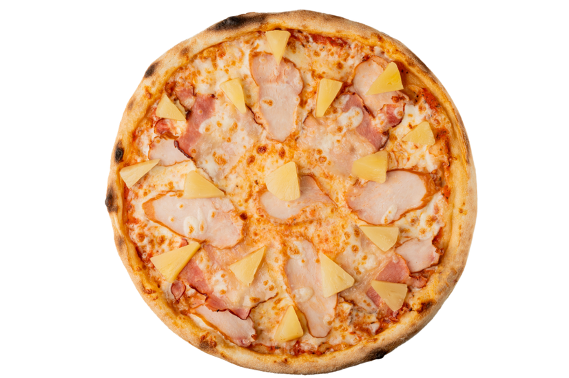 Авторський томатний соус, бекон, вершкова моцарела, ніжне куряче філе та соковитий ананас