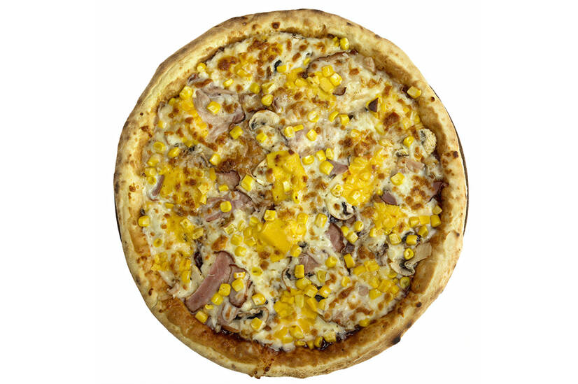 Авторський BBQ соус, вершкова моцарела, бекон, гриби, сир чедер та солодка кукурудза